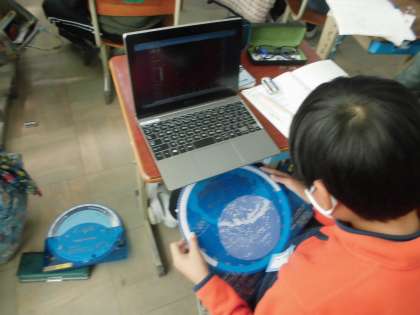 星座早見を使うのは3回目ということで,すいすいと日程と時刻を合わせる子もいれば,友達に見方を聞きながら触っている子もいましたが,みんなオリオン座やオリオン座にある1等星(ベテルギウス・リゲル)を見ることができました。