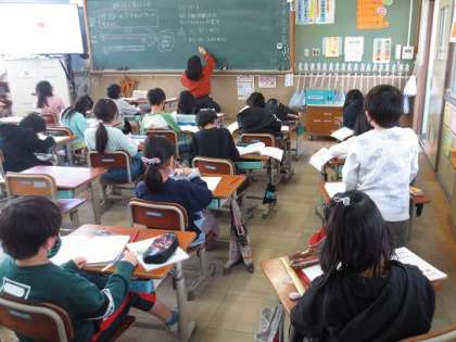 2段のテープ図を使って2つの数量の違いに着目し,「○○は,△△より…だけ多いから足し算です。」「○○は,△△より…だけ少ないから引き算です。」と,その式にしたわけも説明しました。
