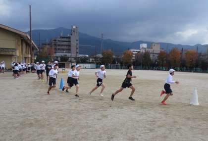 2月6日(日)に予定されている大文字駅伝代替大会に向けてのタイムトライアルがありました。1,000メートルを走ってタイムを記録します。体育の時間に練習してきた成果を発揮できたでしょうか。