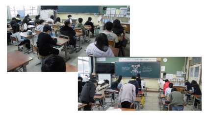 次に,学校生活について諌山先生からお話がありました。1・2月の生活目標『校舎内は右側通行で歩こう』です。前回の生活目標『ろう下,歩こか』から更にレベルアップして,学校内をみんなが安全に楽しく過ごせるようにしようというお話でした。