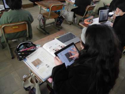 タブレットで,scratchの中の『kotoratch』を使い,箏の疑似体験をしました。