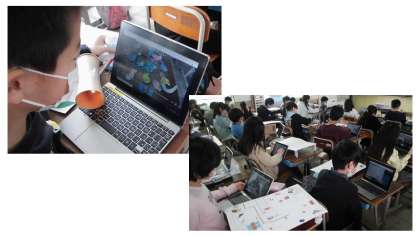 次に,その動画を同じ班の友達に送り,動画を通して自分の作品を紹介しました。友達からの動画を見て,しっかりと遊び方を確認しました。