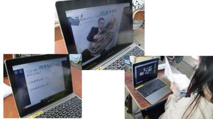 今日の音楽では,ロイロノートを使って今まで学習してきたことを問題にし,その問題を友達に送り合いをする『クイズ大会』を行いました。