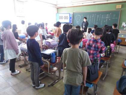 新しい担任の先生と一緒に学活をしました。教室も3階になって中学年の仲間入りです。低学年のよいお手本になってくださいね。