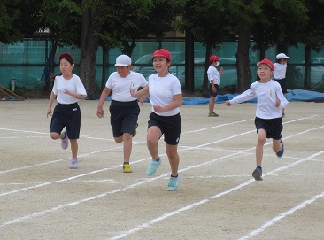 4年生が50メートル走をしていました。ゴールまで全力で一直線に駆け抜けていきます。3年生の時に比べてタイムは速くなったなかな。1年1年たくましく成長していますね。