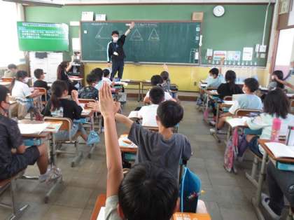 分度器を使って正三角形や二等辺三角形の角の大きさを測りました。分度器の使い方を確かめて,目盛りをしっかりと読んでいきました。