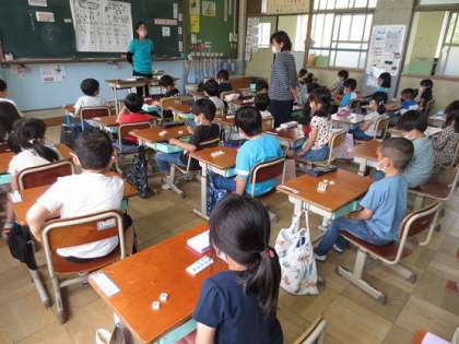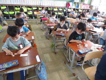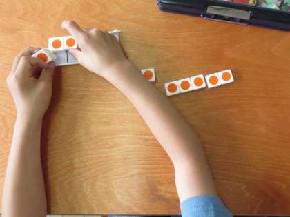 数図ブロックを動かしながら「5と2は7。」「5と4は9。」と言って,6・7・8・9・10が「5といくつ」なのかを確かめました。