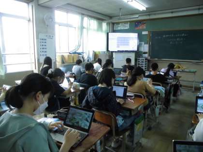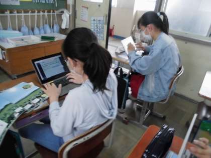 6年生のジャガイモ畑の葉の様子を見て,気づいたことを交流しました。
