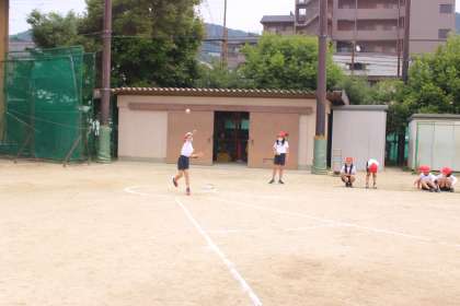今日は,ソフトボール投げをしました。