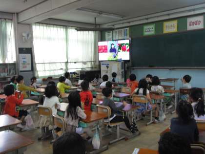 1年生を迎える会では,2〜6年生までの各クラスで撮影した1年生の入学をお祝いする動画を見ました。小野小学校について,詳しく知ることができましたね。1年生のみなさん,楽しい学校生活を過ごしてくださいね。