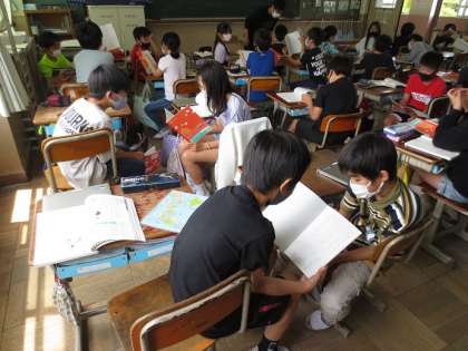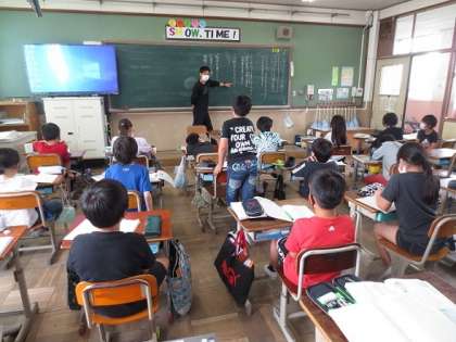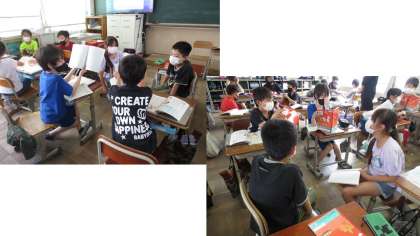 4人グループで話し手,聞き手,記録者,映像を撮影する人の役割にわかれて,友達にインタビューをしました。