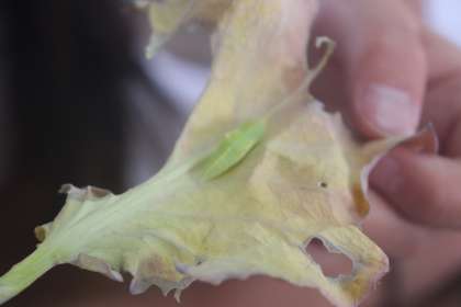 前回観察したときは幼虫の姿だったモンシロチョウが