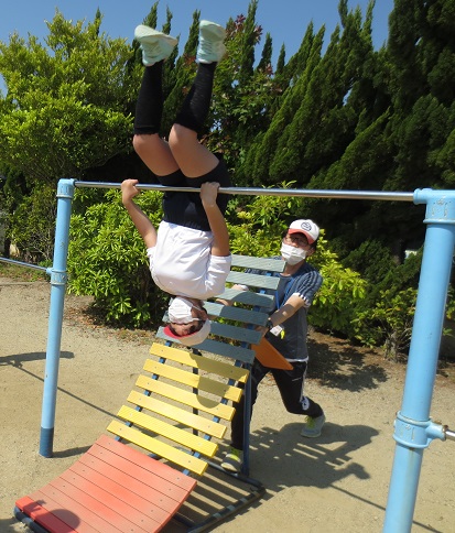 補助具を使って逆上がりに挑戦したり,自分ができる技やもう少しでできる技を練習したりしました。