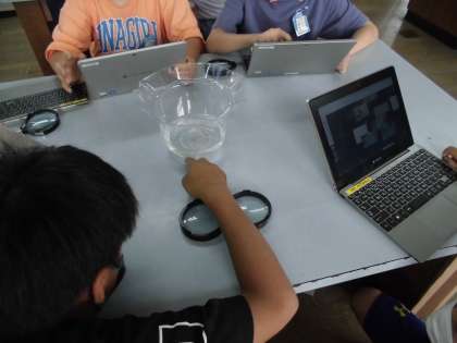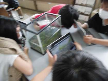 そして,「先生!このメダカ,卵ついてる!!」とみんな興奮しながら,卵のついためすのメダカをじっくりと観察することができました。