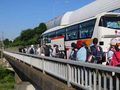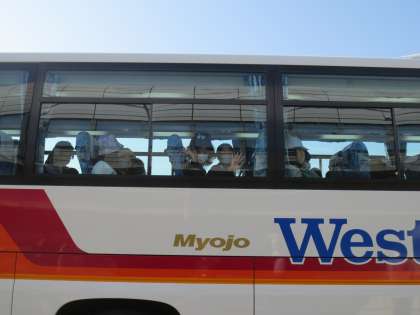 出発式を終え,バスに乗り込みます。