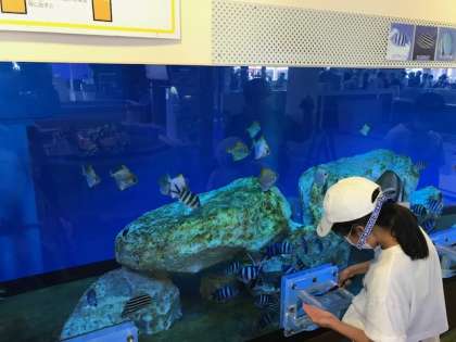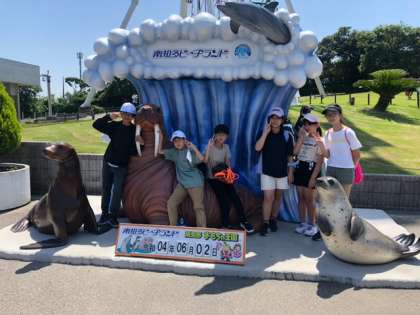 見学の間には,決まった時刻に始まる色々なショーもあるため,予定を確かめながら,どの班も計画通りに活動しています。