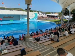 イルカのショーが始まっています。