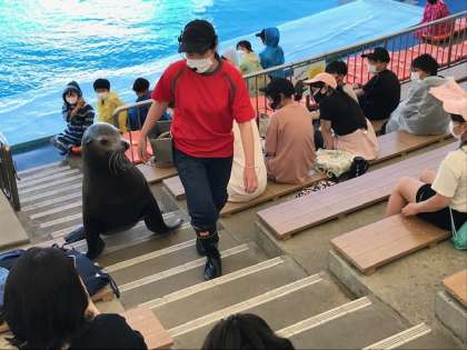 アシカショーを楽しんでいる子どもたちもいます。