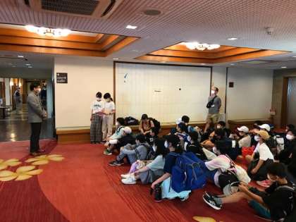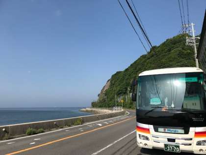 この後,2日目の活動を本格的に始め,本日の最初の目的地「犬山城」へバスに乗って出発します。本日もとても良い天気に恵まれ,楽しい活動ができそうです。
