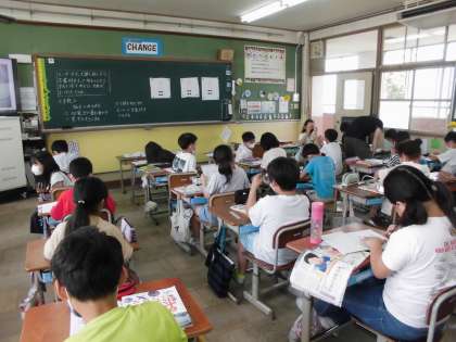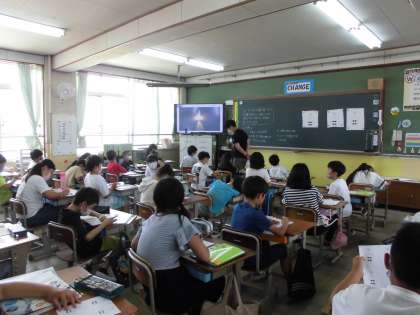 モーター一つ,電池2つだけ書かれた紙に,子ども達は