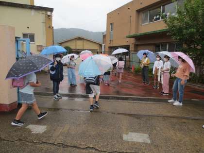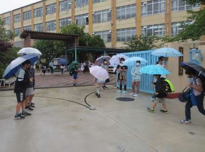 今日も雨の中でのあいさつ運動となりました。児童会の子どもたちが大きな声であいさつをすると,それにこたえるようにあいさつをする児童がたくさんいました。今日あいさつができた人は177名だったそうです。