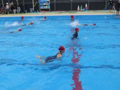 雨が上がったので5年生は水泳運動をしました。今の自分の泳力を確かめるために,できる泳ぎ方で25mを泳ぎました。クロールや平泳ぎ,背泳ぎでスイスイと25m以上を泳ぐ人もいました。
