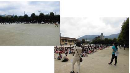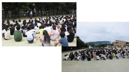 運動場に集まり,人数確認が済んだら,安全主任・校長先生からのお話がありました。