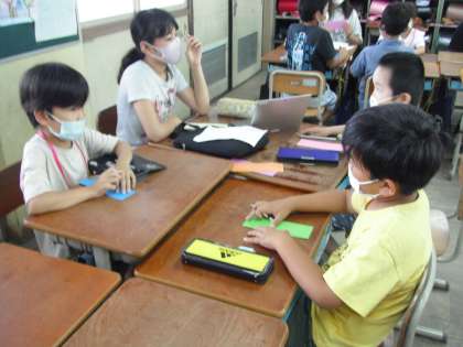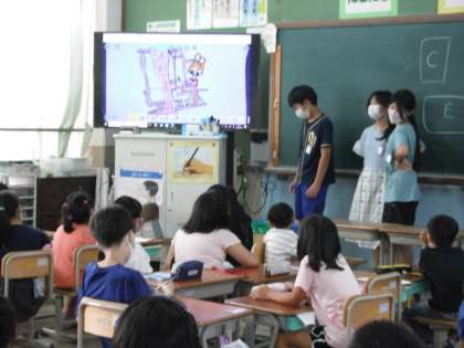 たてわり班に分かれて、七夕集会を行いました。始めに七夕のお話を紙芝居で6年生に紹介してもらいました。その後教室で短冊に願いごとを書きました。