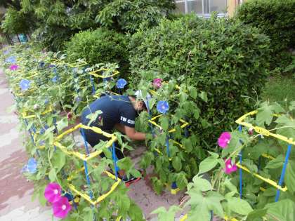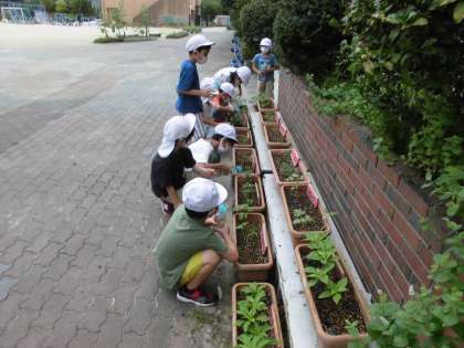 自分のアサガオだけでなく、1年生みんなで育てているプランターのお花への水やりも積極的に行っていました。