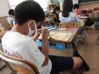 玉止め、玉むずび、なみ縫い、本返し縫い、半返し縫いの練習が進んでいます。
