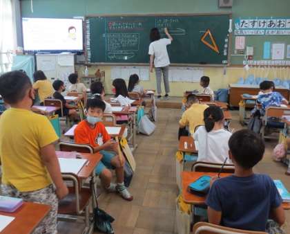 テープ図に、「はじめの長さ95cm」「のこりの長さ9cm」「使った長さ□cm」を書き込み、「使った長さ」を求めるためにはたし算をすればいいのか、引き算をすればいいのかを考えて式を書きました。