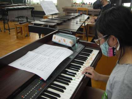 音楽科では、音楽室に行って「ミッキーマウスマーチ」の曲を合奏しました。打楽器やオルガン、木琴に分かれて練習し、みんなで合奏しました。ことこつと練習をがんばり、どんどん友だちとリズムや速さを合わせられるようになってきましたよ。