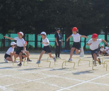 バラエティ走では、輪っかをくぐったり、ボールを運んだり、コーンの周りを回ったりしました。最後のポーズがかわいかったですね。