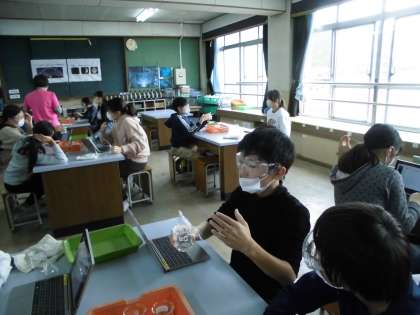 見た目・におい・蒸発させて残るものを見る、という3つの方法で、5種類の水溶液の違いを考えていきました。
