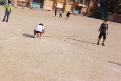 半径5メートルの円を描くことに取り組みました。