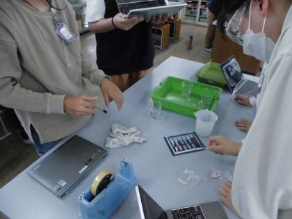 はっきりと反応が出る水溶液があれば、「これって色変わってるやんな?」と確認し合う水溶液もありました。