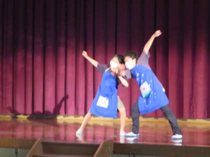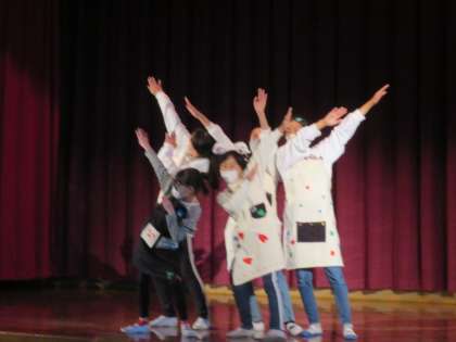 1日(火)の5校時に、家庭科の学習で作ったエプロンを着て学年でファッションショーをしました。子ども達は、舞台上で思い思いのポーズをとり、ランウェイ(マットの上)を歩きました。帽子やサングラスなどの小道具を準備している子もいて、大いに盛り上がりました。