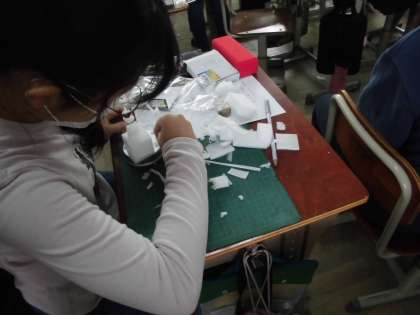 メラニンスポンジを好きな形に切って、積んだり並べたりします。