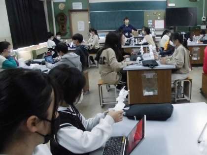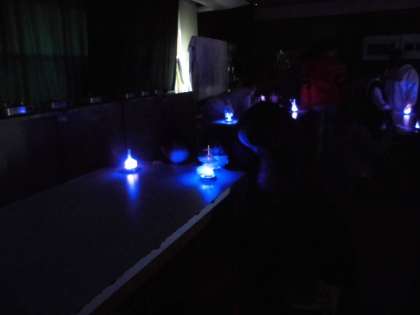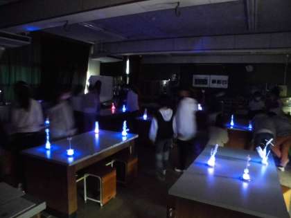 理科室で黒いカーテンを閉めて、ライトをつけると・・・