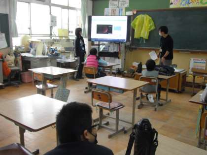 今日は観察した記録や、写真をもとに太陽は東から南を通って西に沈んでいくということに気がつきまとめることができました。また、11月8日に皆既月食が起こることを知りました。映像でどのようなことが起こるのか確認し、「観てみたいな。」と意欲的な子どもたちでした。