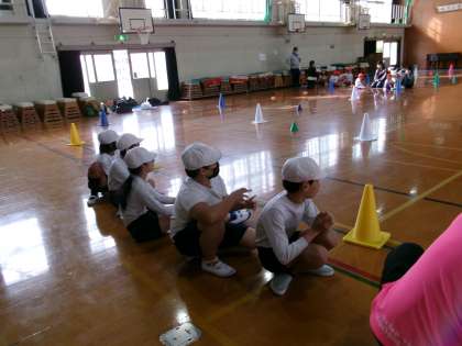 山科支部育成学級合同運動会が行われました。今回は山科支部を3つのグループに分け、小野小は山階南小、勧修小、百々小の子どもたちと活動しました。開会式では、開会宣言、学校紹介、校長先生の挨拶、はじめの言葉のあと準備体操で「パプリカ」を踊りました。