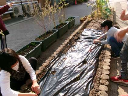 玉ねぎの苗と小松菜の種まきをしました。野菜が大きく育つのが楽しみですね。
