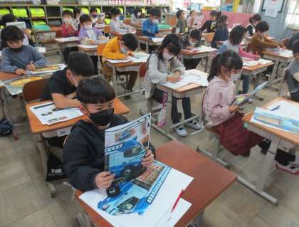 自分が選んだ車について、本を読んで調べ、「はたらき」と「つくり」「すごいところ」を友達に伝え合いました。