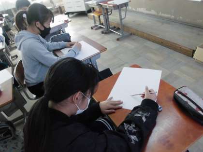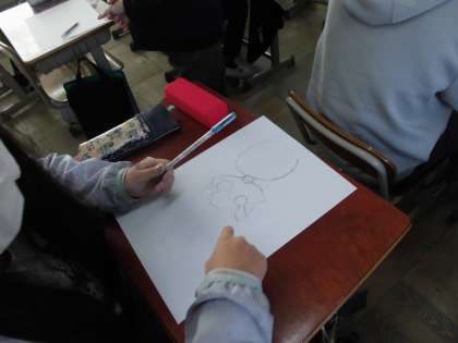 スポーツデーの写真や動画を見ながら、どんな動きがあったのかふり返り、自分が表現したいと思った場面をスケッチしてみました。