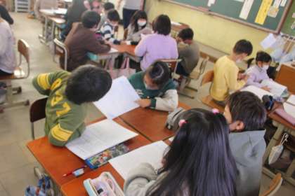 言葉や表現を工夫しながら冒険物語を書き進めています。