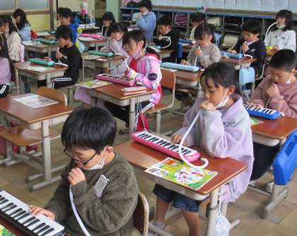 「子犬のマーチ」を鍵盤ハーモニカで弾く練習をしました。指づかいが少し難しいので、先生と一緒に確認しながらの練習です。子犬の様子をイメージして、軽快に演奏できるといいですね。