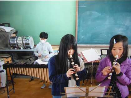 今日は、6年生とできる最後の音楽科の時間でした。みんなで、「エーデルワイス」「ミッキーマウスマーチ」の合奏を楽しみました。曲の終わりまで演奏を合わせることができました。楽しく合奏をすることができてよかったですね。