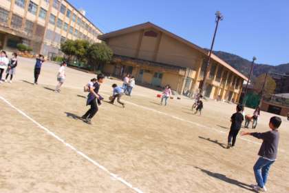 クラスのみんなでドッジボールをして遊びました!