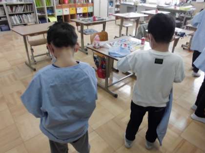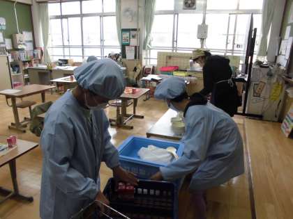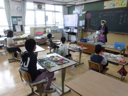 給食が始まり、1週間。1年生も少しずつルールに慣れ、準備に片付けにできることをがんばっています。準備できた後は、みんなで「いただきます!」