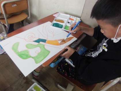 3年 図工「絵の具+水+筆」No.1